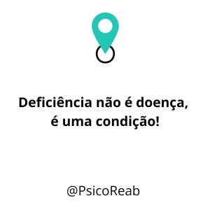 A deficiência diz respeito às limitações, impedimentos e funcionalidade. Não é uma doença!